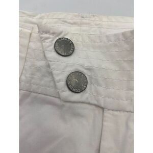 Description: White, adjustable leg opening, cargo pockets, #2 patch in navy on left leg, print on right front pocket as pictured