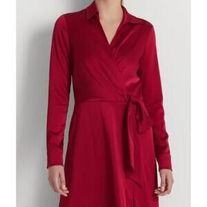 Lauren Ralph Lauren Women's Charmeuse Surplice Dress in Classic Red