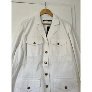 Lauren Ralph Lauren Women's Denim Jacket Size 18W White Gold Logo Buttons NWT