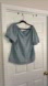 Stylish off-shoulder blouse in light blue. Features elegant detailing. Perfect for casual outings.