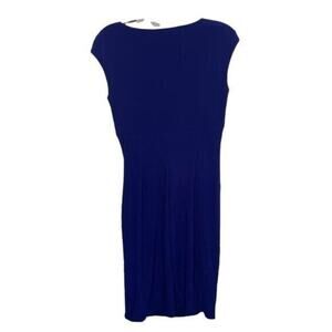 Lauren Ralph Lauren Women's Size 4 Blue Sleeveless Sheath Lined V Neck Dress. In great condition no stains no rips. Padded shoulders. Rushed sides. Jersey material. Stretchy. Pullover. Look elegant in this stunning Lauren Ralph Lauren dress. The sleeveless sheath dress features a V-neckline and a pullover closure, making it perfect for both business and party/cocktail occasions. The dress is knee-length and comes in a beautiful blue color. It is a size 4 regular fit dress, handmade with a solid pattern. The dress is also lined and has no personalization features. This dress is ideal for women of all ages and is perfect for those who want to look stylish and classy.
