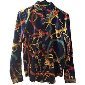 Lauren Ralph Lauren Women's Equestrian Button Front Long Sleeve Shirt Size Small