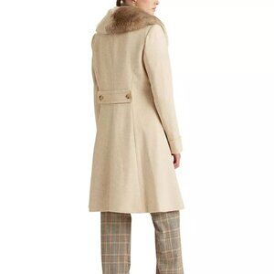Lauren Ralph Lauren Womens Faux Fur Collar Coat in Cream Beige Size 14 NWT