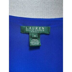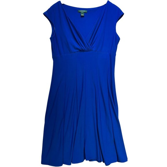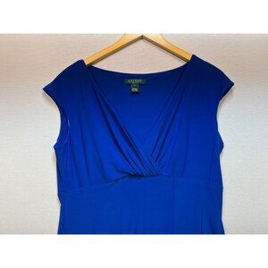Lauren Ralph Lauren Women's Faux Wrap V Neck Dress Cap Sleeve Sz 14 Royal Blue
