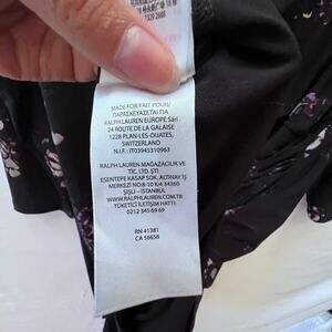 Lauren Ralph Lauren Women's Floral Black V-Neck Ruched 3/4 Long-Sleeve Dress 14P