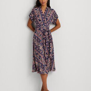 ๐ Lauren Ralph Lauren Women's Geo-Stripe Belted Crepe Dress ๐