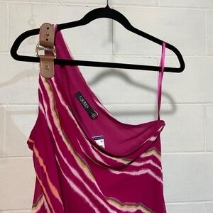 Lauren Ralph Lauren Women's Georgette Dress 12 Pink Striped One-Shoulder Wedding