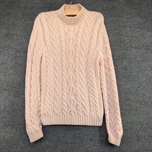 Lauren Ralph Lauren Women's Hand Knit Fisherman Cable Knit Sweater Pink Size L