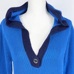 Lauren Ralph Lauren Women's Hooded Ribbed Knit Sweater Large Blue