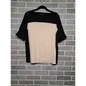 Lauren Ralph Lauren Womens Ivory,Black Pullover Cuffed Top Size 1X