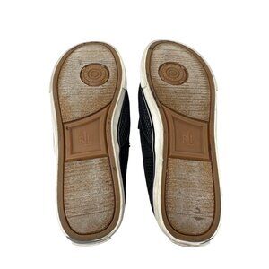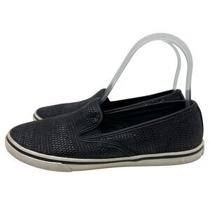 These black textured slip-on sneakers offer a sleek and stylish look, perfect for casual outings. Designed with a low-profile rubber sole, they provide comfort and ease of wear. Their slip-on design ensures convenience and a modern aesthetic.