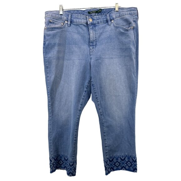 Lauren Ralph Lauren Womens Jeans Sz 18W Cropped Embroidered Raw Hem Blue Stretch
