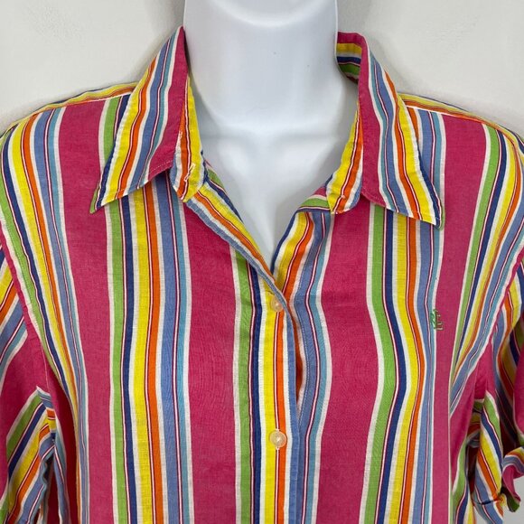 Lauren Ralph Lauren Womens LINEN Tunic Top Size Large Striped Beachy Vacation