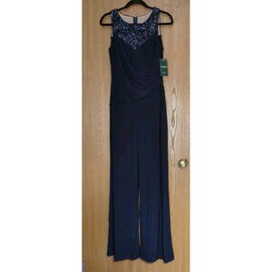 Lauren Ralph Lauren Womens Lace Overlay Sequined Jumpsuit Navy Size 8 New W/Tags.