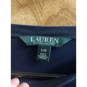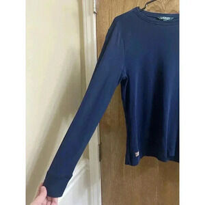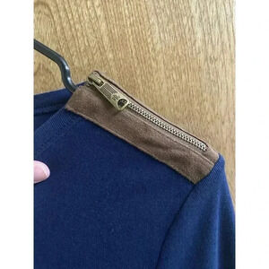 Lauren Ralph Lauren Women's Long Sleeve Brown Suede Elbow Patch Top Size L Navy
