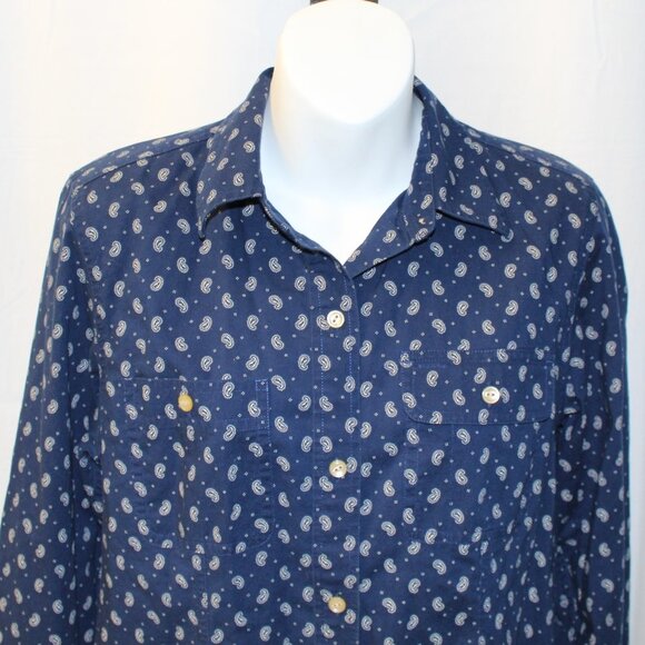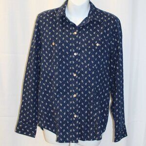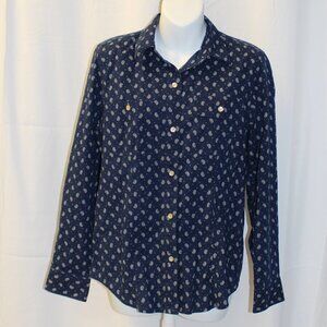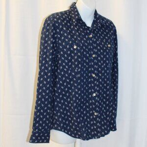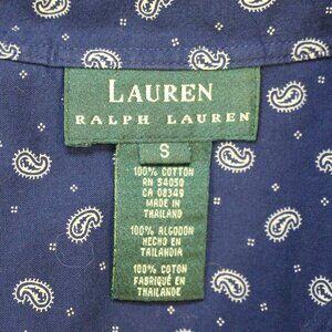 Lauren Ralph Lauren Women's Long Sleeve Button Up Top Navy Paisley Print Small
