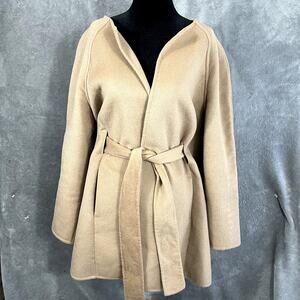 Lauren Ralph Lauren Women's M Wool Coat Beige Tie Waist Old Money