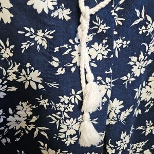 Lauren Ralph Lauren Women's Med Blue Floral Cropped Pants line blend wide leg elastic waist pullon tassel tie pockets