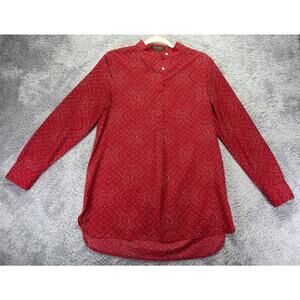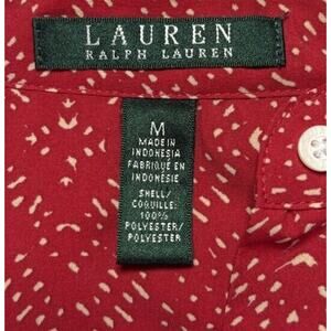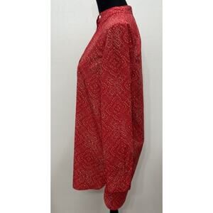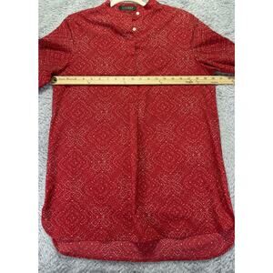 Lauren Ralph Lauren Womens Medium Red Tan Boho Retro Popover Tunic Top Blouse