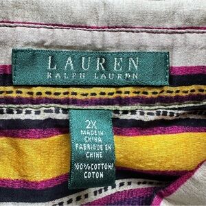 Lauren Ralph Lauren Womens Multicolor Striped Button Shirt 2X Cotton Long Sleeve