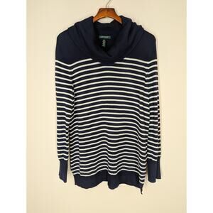 Lauren Ralph Lauren Women's Navy & White Striped Cowl Neck Slit Sweater Size XL