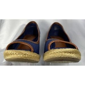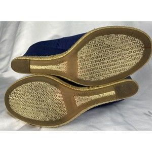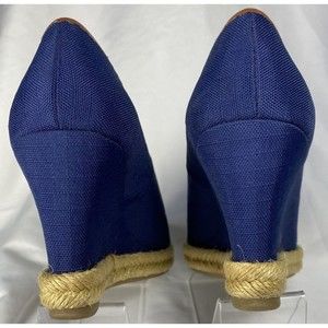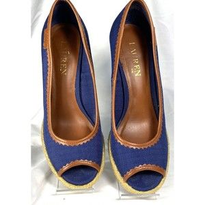 Lauren Ralph Lauren Women's Nella Wedge Heels Peep Toe Fabric Size 6B Blue