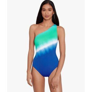 Lauren Ralph Lauren Womens One Piece Swimsuit Size 12 Blue One Shoulder Swim
