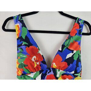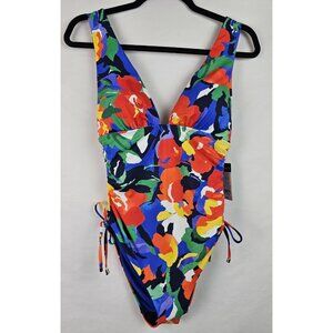 Lauren Ralph Lauren Womens One Piece Swimsuit Size 8 Floral Plunge Swimsuit Swim