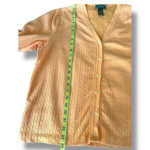 Lauren Ralph Lauren Women’s Orange Cable Knit 3/4 Sleeve Cardigan Sweater Size L