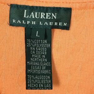 This Lauren Ralph Lauren Women's Orange Cable Knit 3/4 Sleeve Cardigan Sweater in size L is a stylish and versatile addition to any wardrobe. The sweater features a classic cable-knit design with a v-neckline, making it perfect for casual occasions and travel. It is made from a blend of polyester and cotton, ensuring comfort and durability. The vibrant orange color adds a pop of color to any outfit, while the 3/4 sleeve length and lightweight fabric make it suitable for all seasons. The coastal grandma, coastal, classic, and preppy themes make this sweater a timeless and fashionable choice for women who appreciate quality and style.