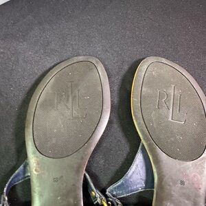 Lauren Ralph Lauren Womens Patsi T-Strap Thong Flat Sandals Size 8B Black Logo
