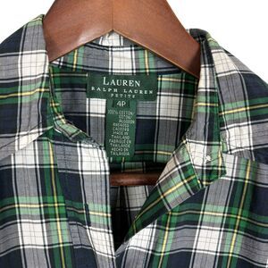 Lauren Ralph Lauren Women's Petite 4 Green Navy Plaid Button Down Emblem Shirt