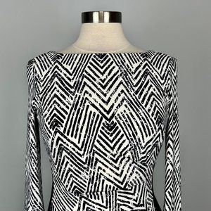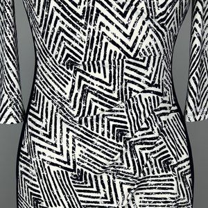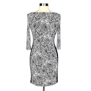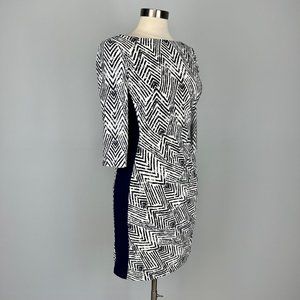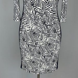 LRL blue white chevron print 3/4 sleeve sheath dress