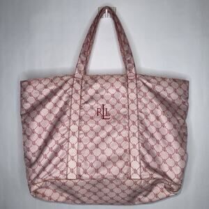 Lauren Ralph Lauren Women’s Pink Monogram Nylon Tote & Cosmetic Bag