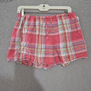 Lauren Ralph Lauren Women's Pink Plaid Button Up Shorts Cotton Pj Set Large