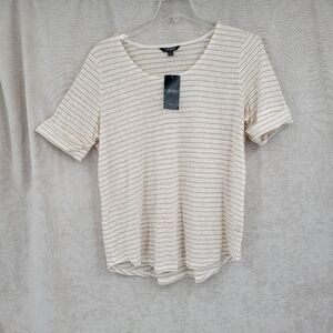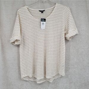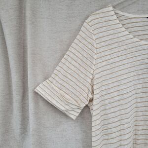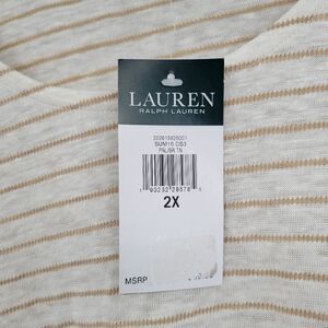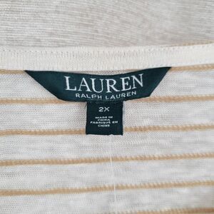 Lauren Ralph Lauren Women's Plus Size 2X Linen Top Cream Tan Stripes NEW