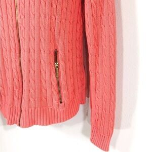 Lauren Ralph Lauren Women's Preppy Academia Coral Cable Knit Zip Sweater Jacket