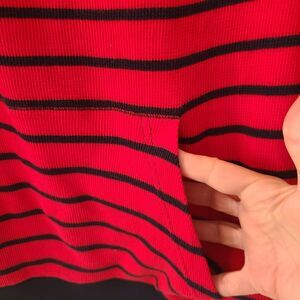 Women's Red Striped Lightweight Sweater. Navy stripes.