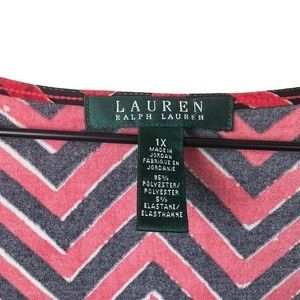 Lauren Ralph Lauren Womens Red Black Chevron Cap Sleeve Faux Wrap Dress Size 1X