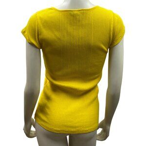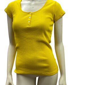 Lauren Ralph Lauren Womens Ribbed Yellow Henley Short Sleeve Top M