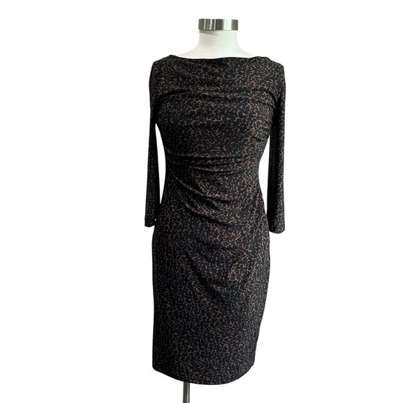 Lauren Ralph Lauren Women's Ruched Leopard Ruched Sheath Career Dress Size 6
