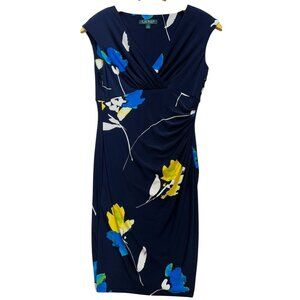 Lauren Ralph Lauren Womens Ruched Wrap V Neck Dress Cap Sleeve Sz 4P Navy Floral
