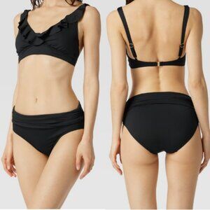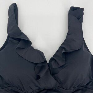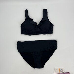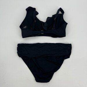 Lauren Ralph Lauren Women's Ruffled V Neck Two-Piece Swimsuit Black Size 14 NWT