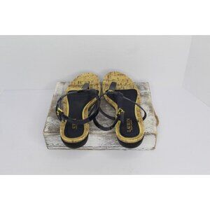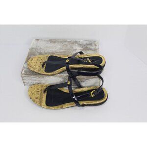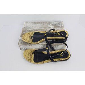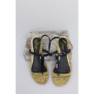 Lauren Ralph Lauren Women's Sandals Kya 10B Blue Faux Leather Ankle Straps Flats