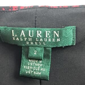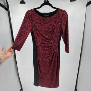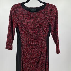 Lauren Ralph Lauren Womens Sheath Dress 2 Printed Ruched 3/4 Sleeve Red Black