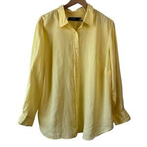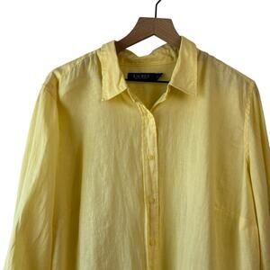 Lauren Ralph Lauren Womens Shirt 2X Yellow 100% Linen Black Label Resort Beach
