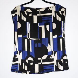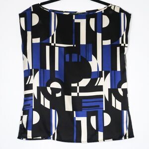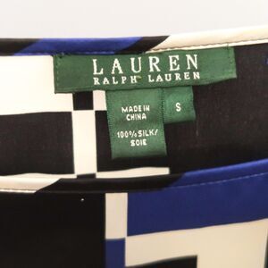 Lauren Ralph Lauren Womens Silk Blouse Size Small Black Blue Geometric Office