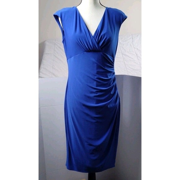Lauren Ralph Lauren Womens Size 10 Ruched Stretch Dress Faux Wrap Royal Blue