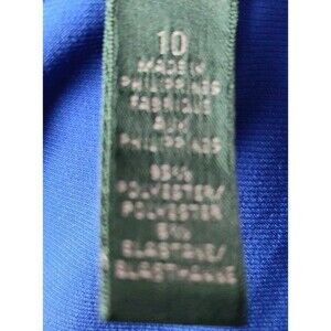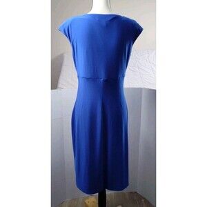 The Lauren Ralph Lauren Women's Size 10 Ruched Stretch Dress in Royal Blue is a classic and elegant sheath dress perfect for various occasions such as travel, weddings, and parties. The dress features a faux wrap design with a v-neckline and sleeveless style, made from a comfortable and stretchy polyester and elastane material. With a knee-length hemline and a solid blue color, this dress is machine washable and suitable for all seasons. It is a timeless piece that exudes sophistication and style, making it a versatile addition to any woman's wardrobe.