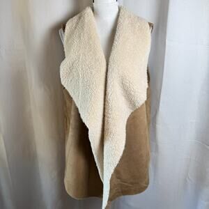 Lauren Ralph Lauren Womens Size 2X Brown Faux Suede Sherpa Lined Vest Jacket EUC